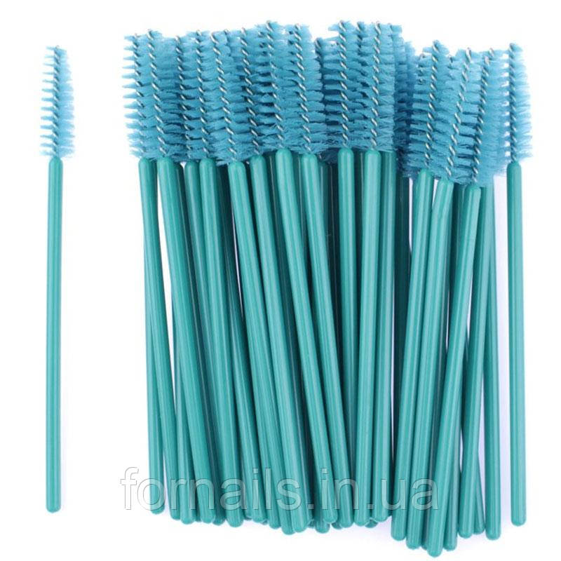 Щіточка для брів та вій пряма, бірюзова, 50 шт